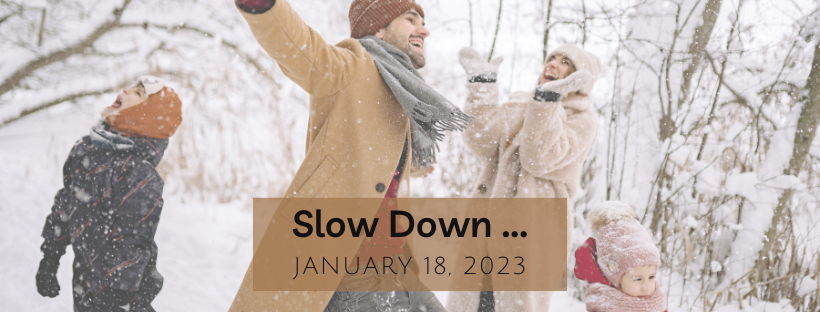 I hope you will slow down today. To listen to the sound of snow falling, to the voices of people/pets you love, to music. To read or write. To simple be present to your body, mind and Spirit and to the God who dwells in this world and in each of us.